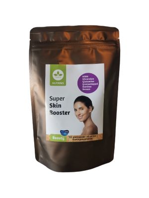 Nutrins heeft de Super Skin Food ontwikkeld om via voeding alle nutriënten binnen te krijgen voor de huid. Deze maaltijdshake kan nog verder versterkt worden met de Super Skin Booster. MSM, Bamboe, Granaatappel, Mineralen en Bessen-mix. Een dagelijks supplement voor het behoud van een jonge stevige huid en glow.