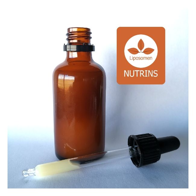 Liposomaal is een nieuwe manier om vitaminen, kruiden en actieve plantaardige stoffen in te nemen. Een liposoom is een "vetlaagje" dat de vitamine omhult. Het vetlaagje bestaat uit een dubbele laag fosfolipiden. Nutrins gebruikt hiervoor pure natuurlijke zonnebloem-olie. het laagje fosfolipiden beschermt de inhoud tegen maagsappen en enzymen. Het lichaam herkent het vetbolletje, het wordt opgenomen door de darmen in de bloedbaan en via de lymfen komt het actieve ingrediënt vrij waar et nodig is. Liposomale supplementen worden beter opgenomen. In vergelijking met tabletten 10 - 30x beter.