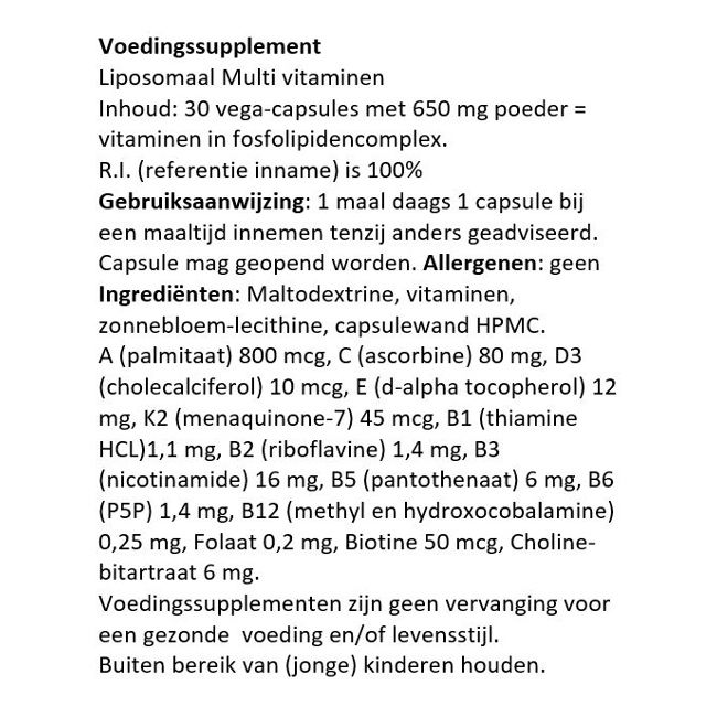 Voor een dagelijkse aanvulling hebben wij een multi gemengd. Bekijk hier de samenstellen van de liposomale multi-vitaminen.